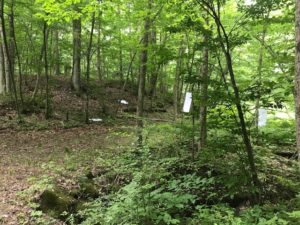 Last fall I learned I could transform a portion of the woods at the Snyder Estate. Century House Historical Society, in Rosendale, NY, sponsors a summer outdoor sculpture exhibit. Over winter I read the history of the site, the vast cement production that enabled the growth of NYC and other towns, the underground nuclear shelters made for wealthy families, the mushrooms that were grown later in the empty mines. Some local history books were official-looking, full of academic references; others were more hobbyhorse, self-published, hand-stapled. So many male industrialists, family drama, the politics of towns vs. cities, the vagaries of economic realities. I wrote notes, but what caught my attention were the verbal oddities — a man named Canvass White, responsible for so much industrialization — the nickname “grey gold” for cement.