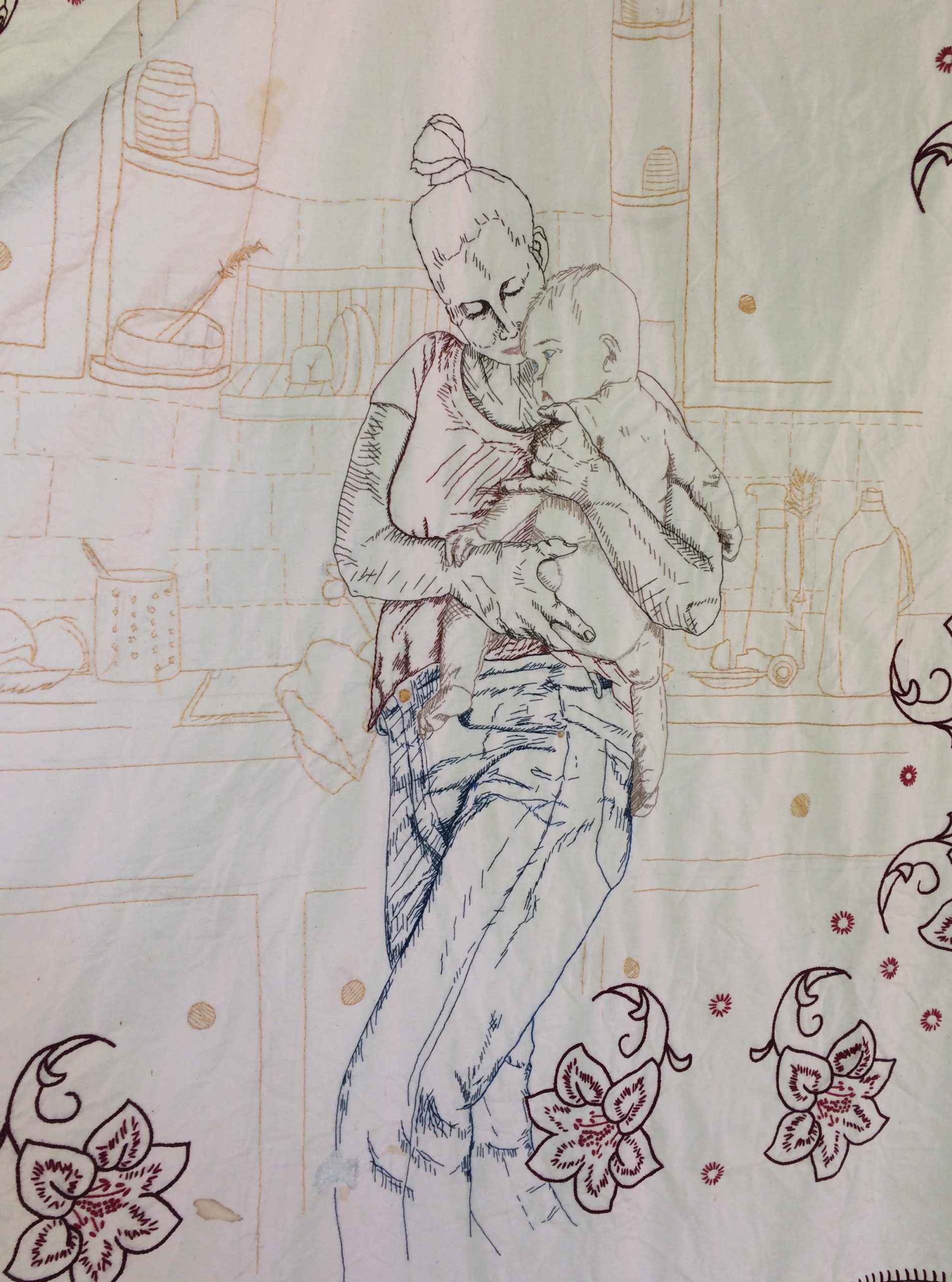 As an artist I have utilized my daily life as muse; my work inevitably reflects this, therefore, as I became a mother my work explored and continues to explore this complex relationship and landscape. Through motherhood I began to explore the psychological landscape of the domestic space through various media. Zooming in, slowing down, creating labor in the small seemingly insignificant moments is an attempt to bring awareness and attention to the glimpses, touches, and objects that create our daily experience. Through my labor intensive drawings. embroideries and the witness of my camera I invite the viewer to slow down, look around and notice their own landscape… a landscape of their domestic world, their emotional state, and their mind.