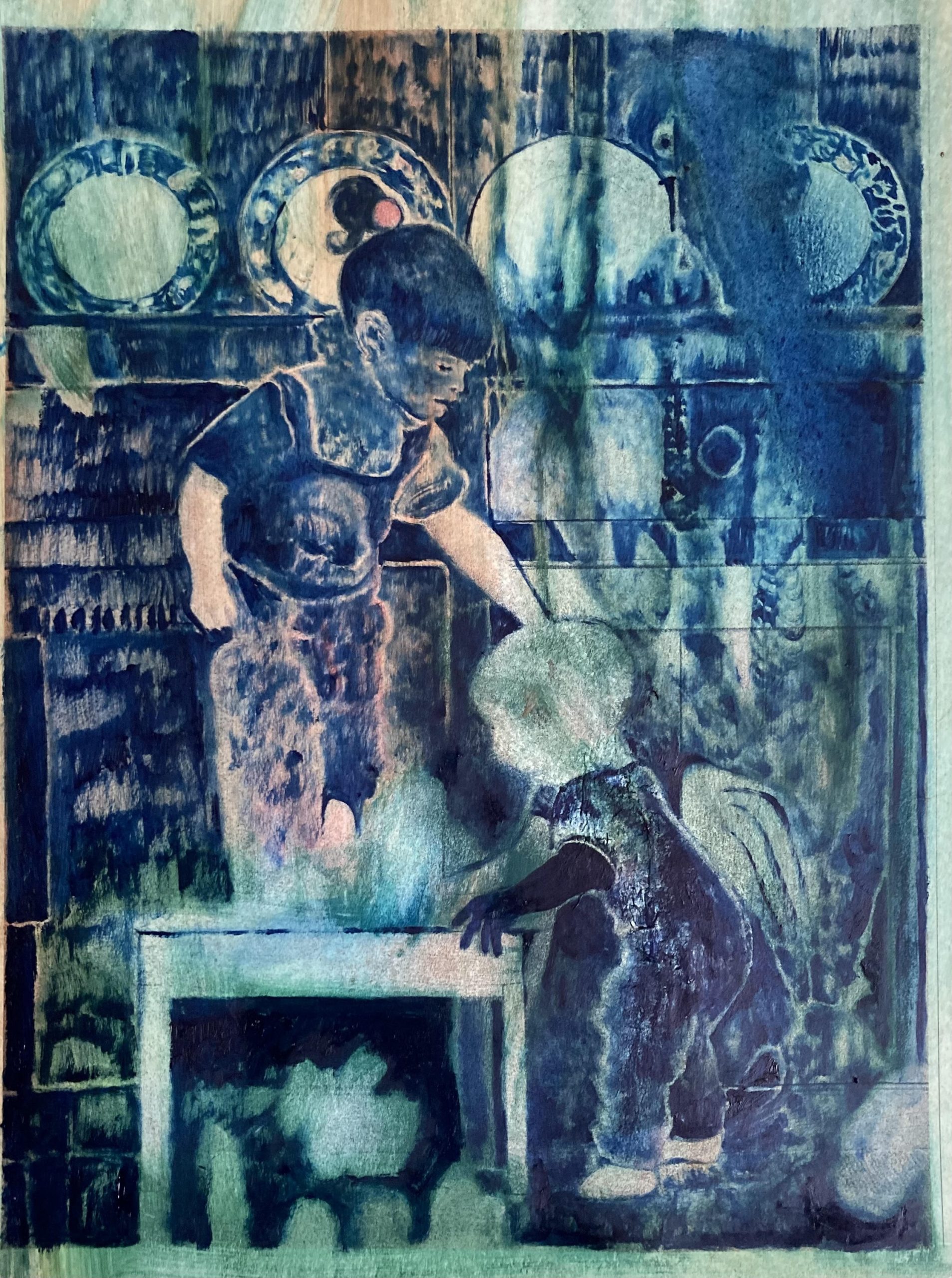 Alexis Soul-Gray is a visual artist based in Devon, UK. Her practice sits predominantly within painting, drawing and printmaking but also includes assemblage, photography and film. Alexis studied at Central Saint Martins and Camberwell College of Art, has completed the postgraduate year at The Royal Drawing School and later this year will start her MA in Painting at The Royal College of Art after 10 years of primarily caring for her two daughters. Alexis has worked in Arts education for 17 years and currently holds a lecturing role in Devon. She has also worked as a curator, producing 3 large scale art events in unusual settings including an old village post office in rural Oxfordshire, the vaults of an Elizabethan mansion in Epping Forest and an inner city folly standing adrift, lost in Birmingham city centre, built in memory of the land owners deceased wife.