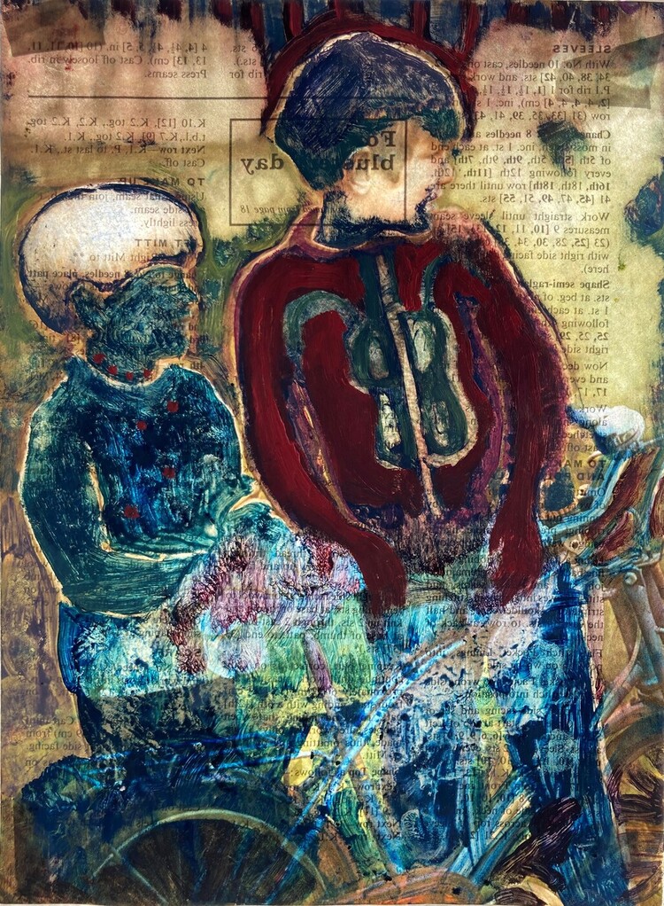 I work on canvas, linen, wood and paper. I have recently been drawn to salvaged found paper ephemera such as vintage embroidery transfers, bible pages, knitting patterns, objects of beauty and magazines/books that give advice/ instruction for domestic success. I often work in layers, deliberately interrupting images through overlap/obstruction as an attempt to create a visceral representation of the thought process. Abstraction and figuration hold equal significance, Images are continuously intersecting, abrasive, harmonious, removed…a tangible manifestation of a multi-layered interior state.