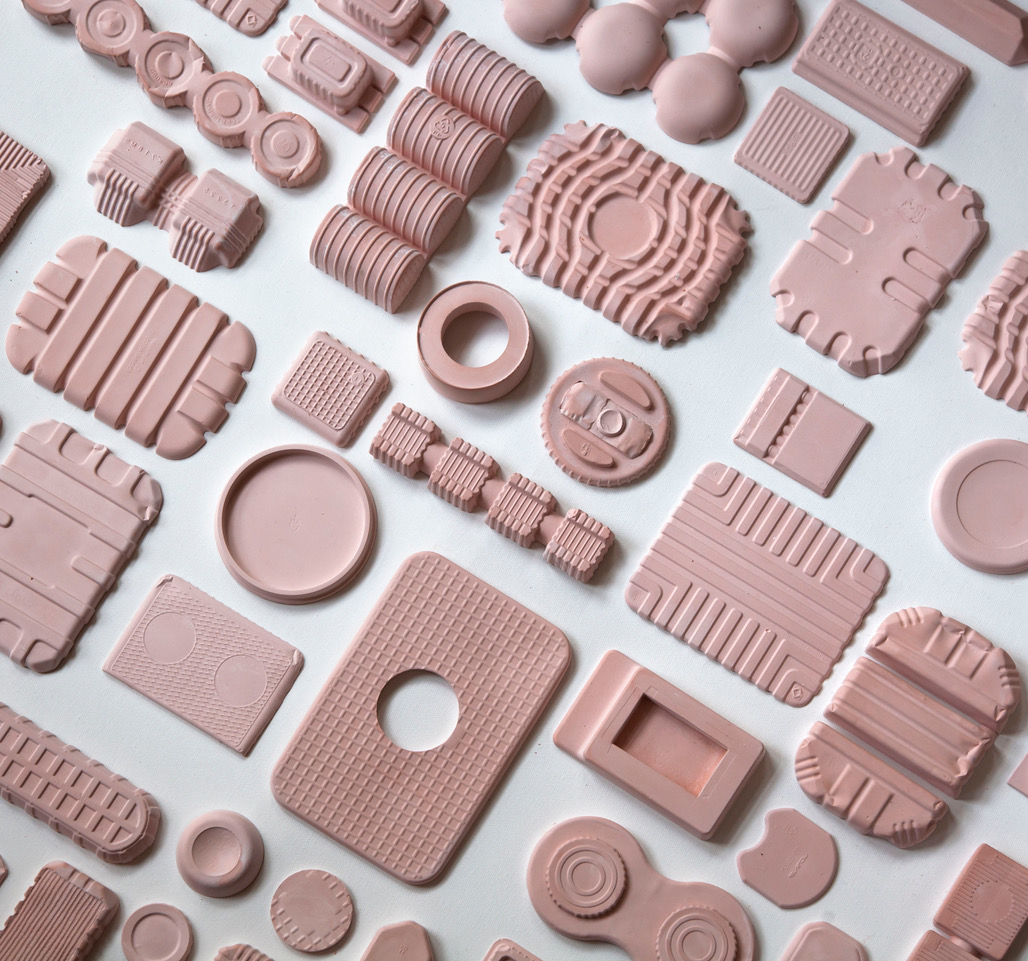 The different scales and textures formed through casting create a panoramic view of containers. The positive and negative spaces play equal importance.