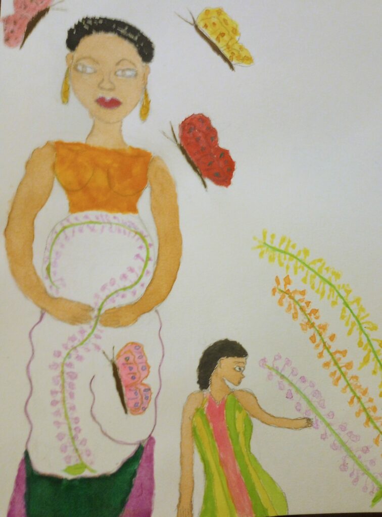 Top, “Pregnant Mother and Daughter in Enchanted Garden”